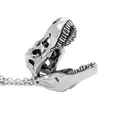 Wear a symbol of the mightiest reptile to walk the Earth with the T-Rex Skull necklace. Made solely of stainless steel, the bold pendant is both a badass accessory and a symbol of power and strength. [Pendant is also available in a miniature size.]