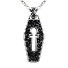 Keep your soul protected with this stainless steel locket. Decorated with black cubic zirconia stones on one side and complete with a stainless steel necklace, this locket will keep you safe from any bad juju out there.