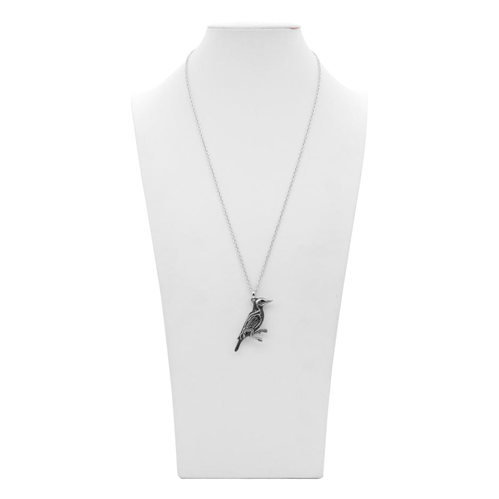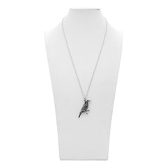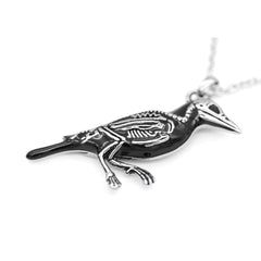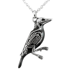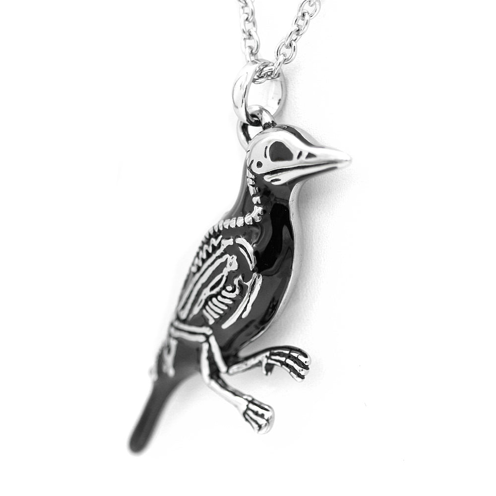 Show off a bit of your dark side with this skeletal raven charm. The stainless steel pendant of the ghastly raven carcass is finished in black epoxy and is coupled with a steel necklace.