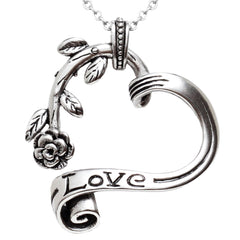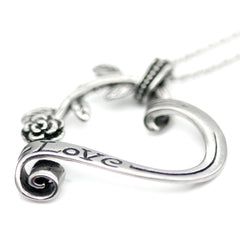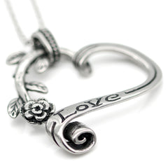 With a fairy tale appeal, Controse Garden Heart and Rose Engraved Love pendant necklace speaks volumes about romance. A scroll, with the word love engraved, effortlessly curves into the stem of a rose, forming a heart. The rose is complete with leaves and thorns, just waiting for that fairy tale ending of happily ever after. Is a perfect gift for loved one. Controse Garden Heart and Rose Engraved Love pendant necklace is made of 316L Stainless Steel. Pendant Size: W: 1.66" H: 1.72", Chain Length: 17" plus 2" extender. Pouch included.